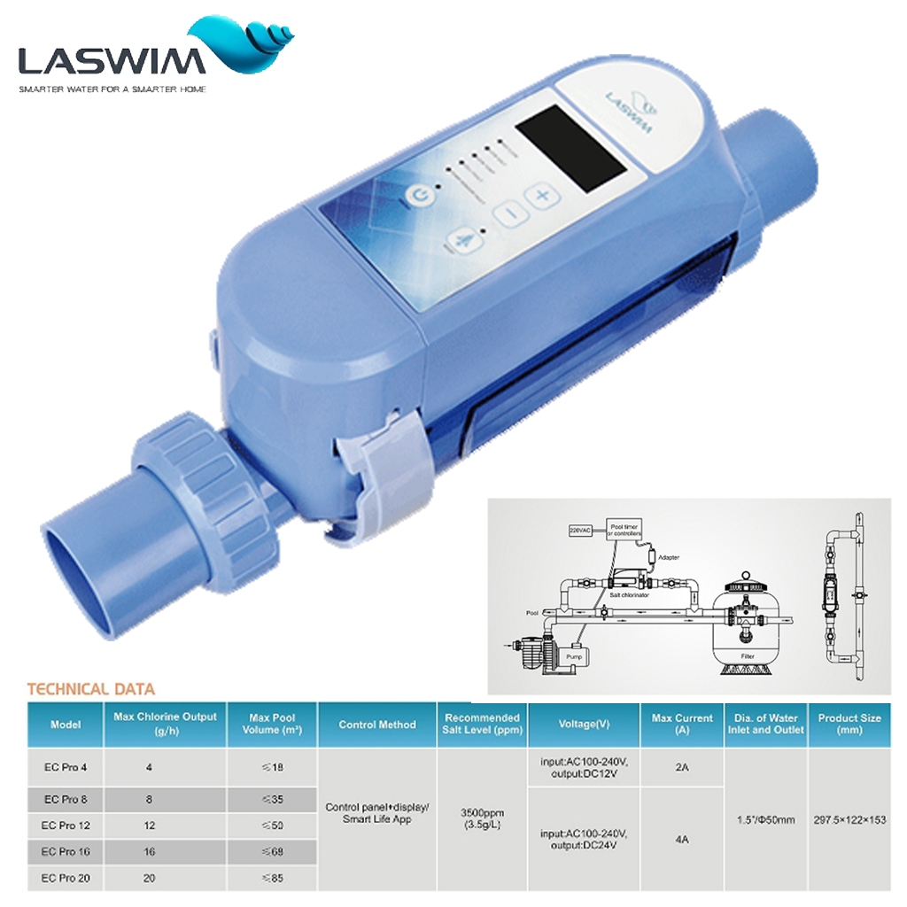 Laswim SALT CHLORINATOR EC Pro EC20 SPA เครื่องกำเนิดคลอรีนอิเล็กโทรไลเซอร์สระว่ายน้ำเครื่องคลอรีนเกลือ Wifi Control EC8