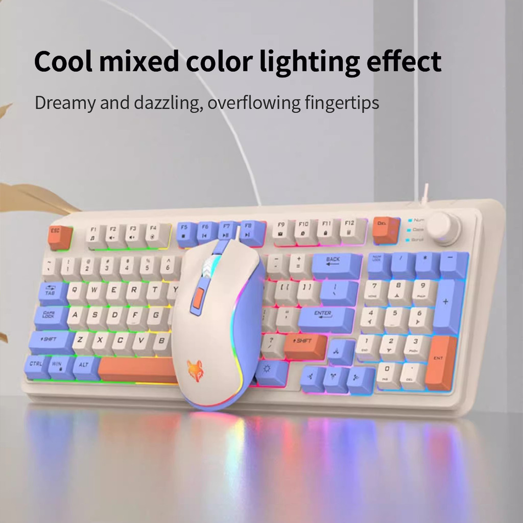 Xunfox Gaming คีย์บอร์ดและเมาส์แบบมีสาย LED RGB 94 คีย์ เสียบและเล่น Office Windows MacOS