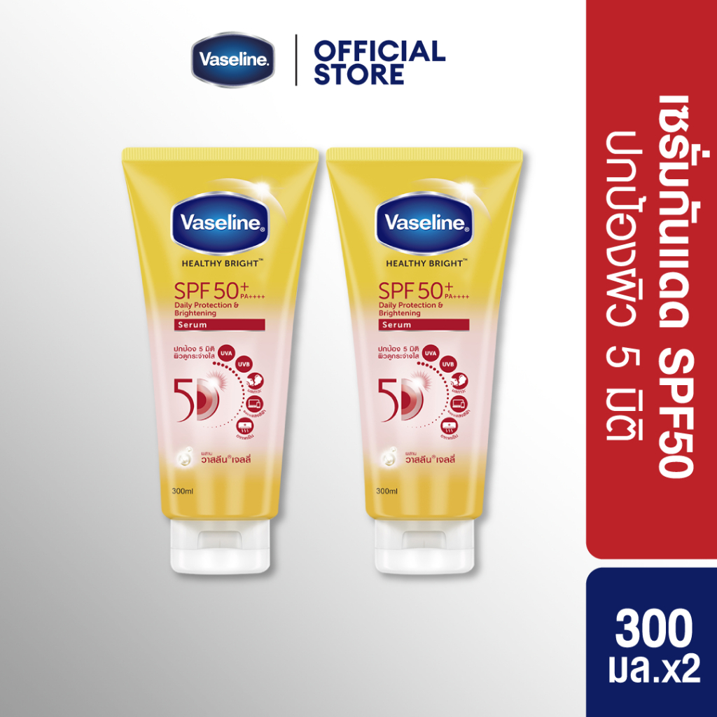 [เฉพาะ Mega Campaign] วาสลีน เฮลตี้ไบร์ท์ ซันแอนด์โพลูชั่น โพรเทคชั่น SPF50+ PA+++ เซรั่ม 300มล. X2