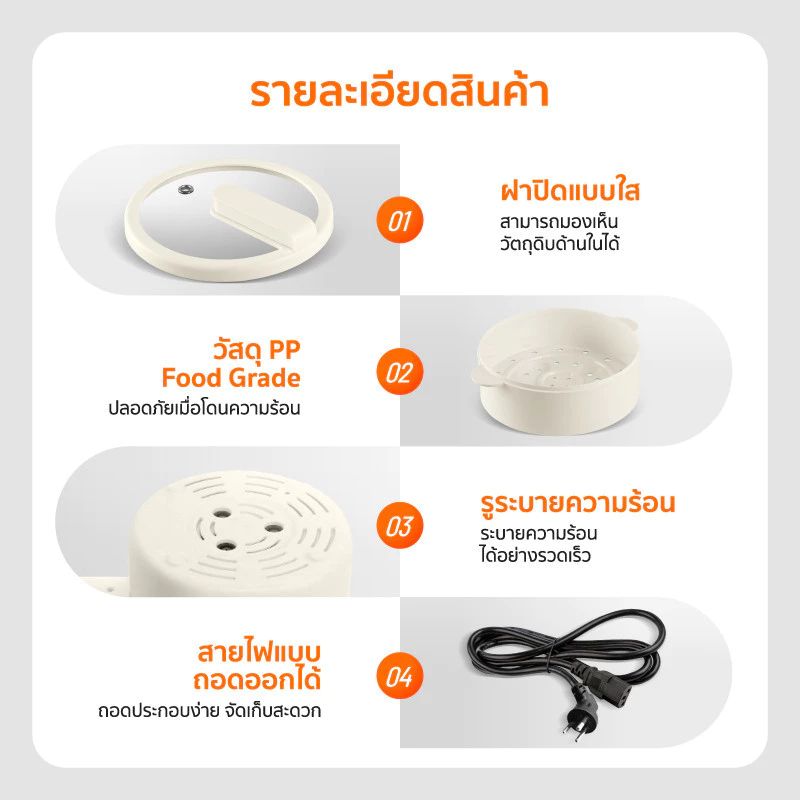 SCE Plus หม้อไฟฟ้า 1.6 ลิตร รุ่น EP1 + หม้อนึ่ง 1.3 ลิตร ทำอาหารอเนกประสงค์ ต้ม ผัด ตุ๋น ครบเครื่อง🔥🍳
