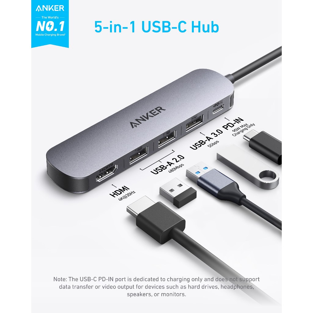 【4K USB3.0】ANKER 5-in-1 /7-in-1 Type C HUB รองรับ 4K@30Hz with 100W Max Power Delivery | high-speed 5Gbps USB 3.0 x1 / USB2.0 x2 | USB-C and USB-A Data Ports | for MacBook/ipad/ Dell XPS/Lenovo and More อะแดปเตอร์ฮับ