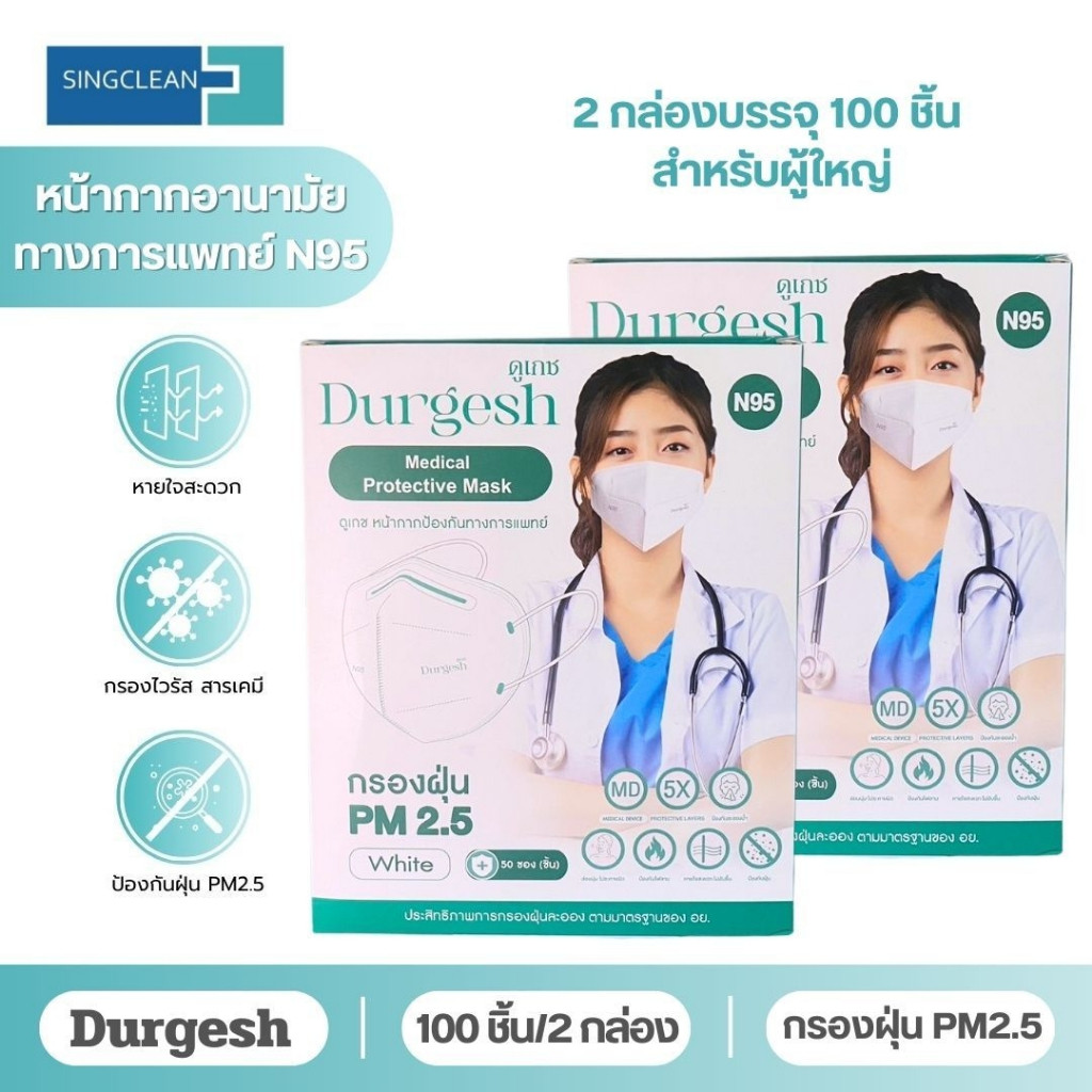 หน้ากากอนามัย N95 Medical Mask ยี่ห้อ Durgesh หนา 5 ชั้น ป้องกันฝุ่น PM2.5 ของเด็กเเละผู้ใหญ่ พร้อมจัดส่ง