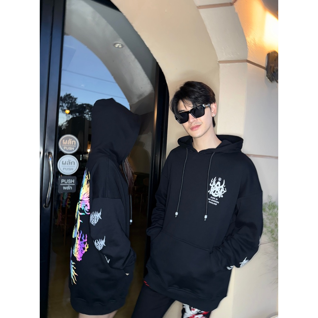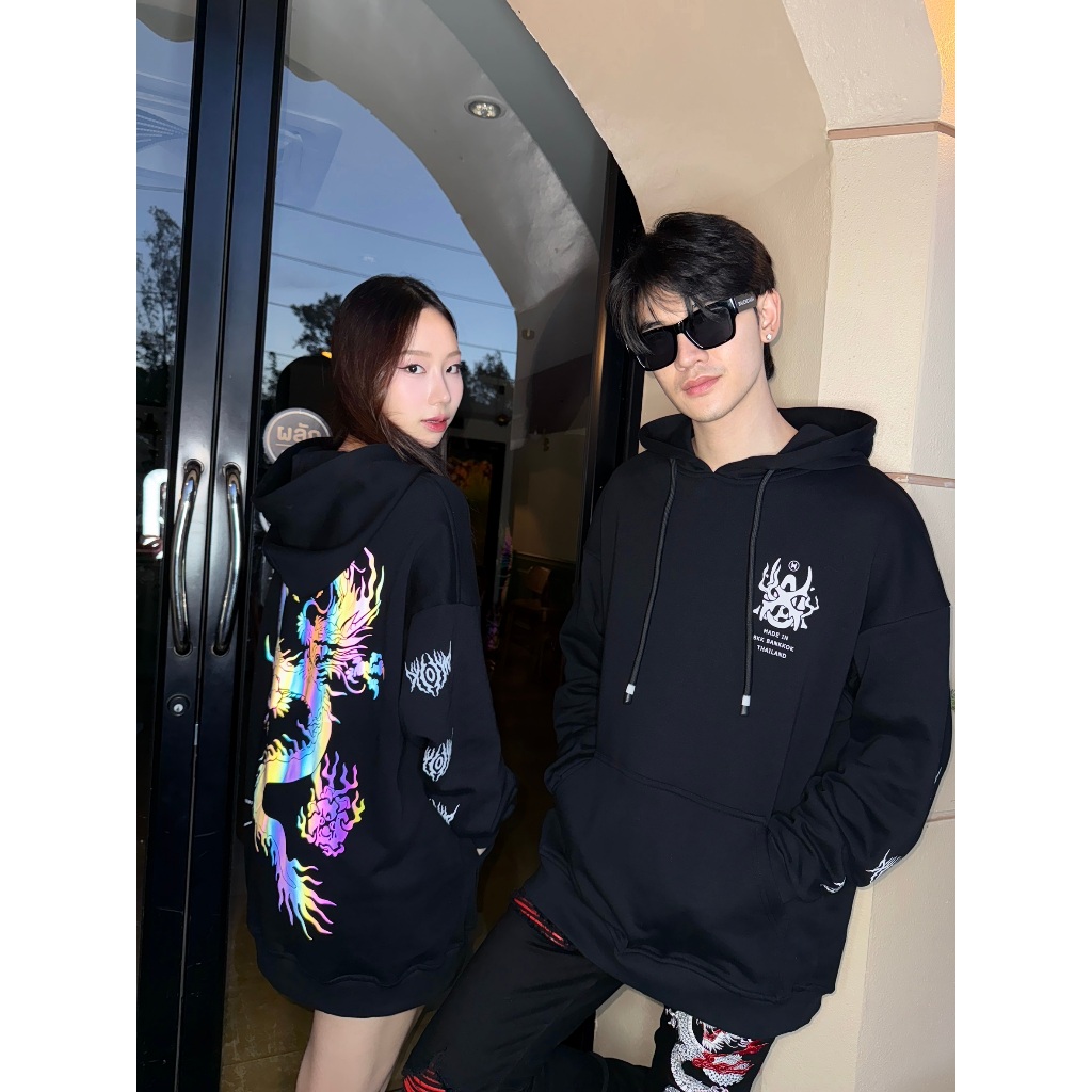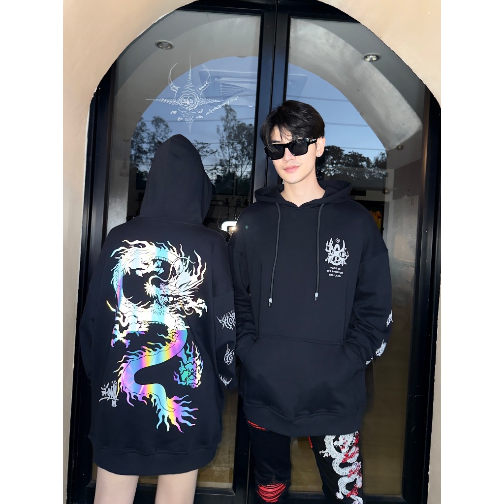 XOM509 เสื้อฮู้ดดี้ เสื้อฮู้ดแขนยาว ลายมังกรสะท้อนแสง XOMBRAND