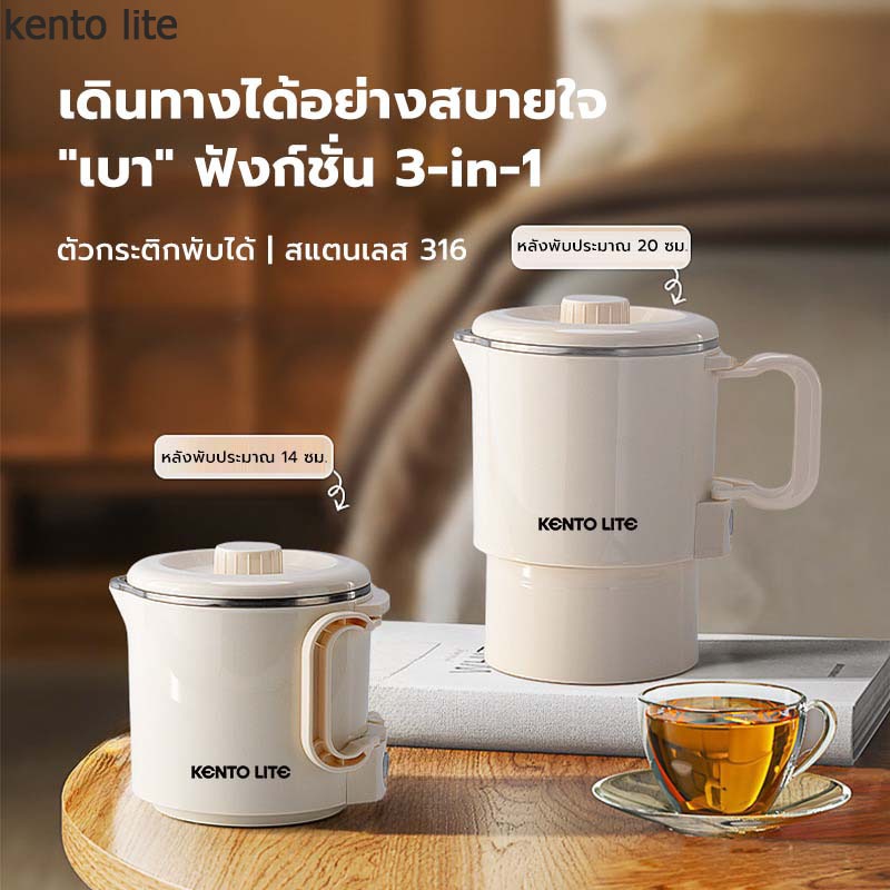 Kento Lite กาต้มน้ำไฟฟ้าพับได้หลายระดับ กาต้มน้ำไฟฟ้าแบบพกพาขนาด 1 ลิตร ควบคุมอุณหภูมิอัจฉริยะ จำเป็นสำหรับการเดินทาง
