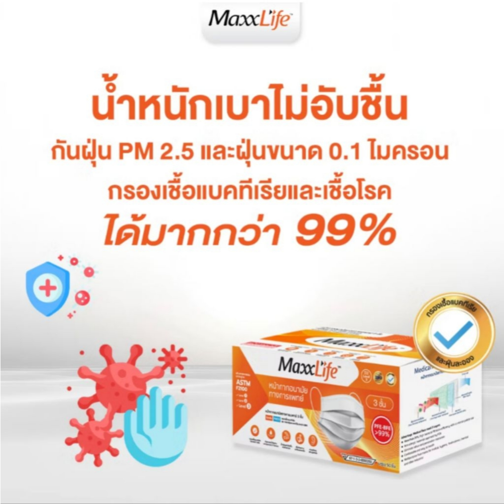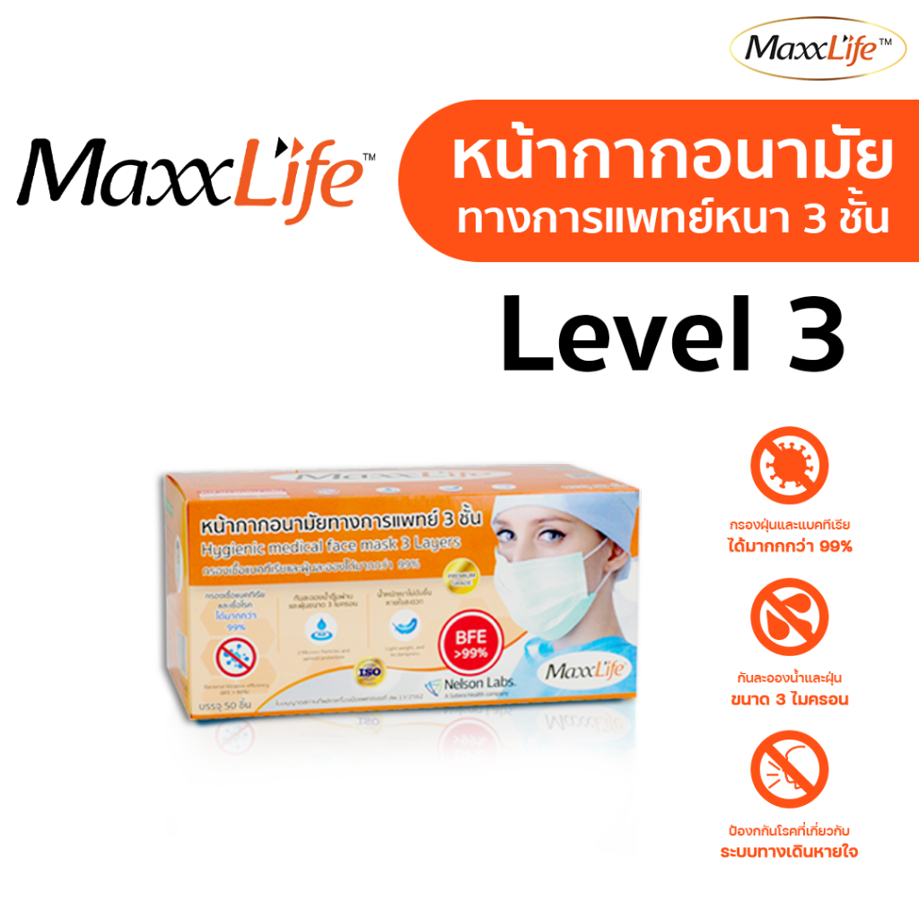 Maxxlife Mask "สีเขียว" หน้ากากอนามัยทางการแพทย์ 3 ชั้น maxxlife 50 ชิ้น สีเขียว