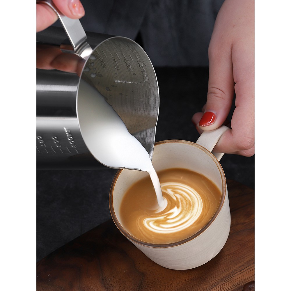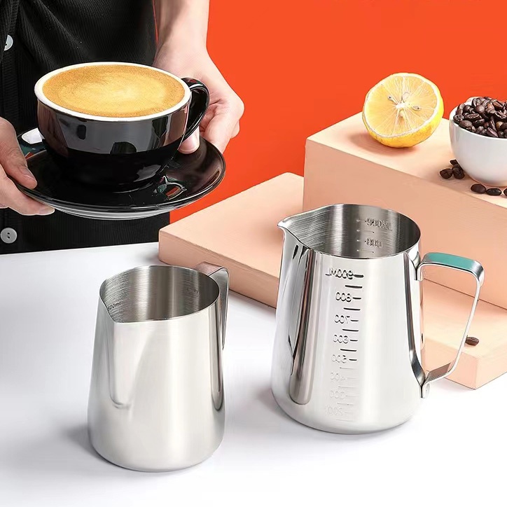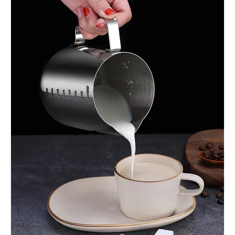 เหยือกตีฟองนม สีเงิน 350ml/550ml /900MLพิชเชอร์ ถ้วยตีฟองนม สแตนเลส Stainless Milk Pitcher สเตนเลส304