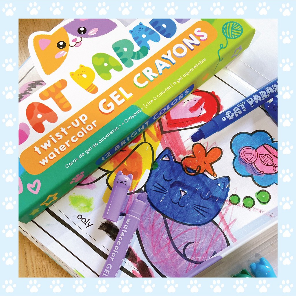 Cat Parade สีเทียนเด็ก ปลอดสารพิษ เนื้อเจล ลายแก๊งน้องแมว 12 สี สดใส