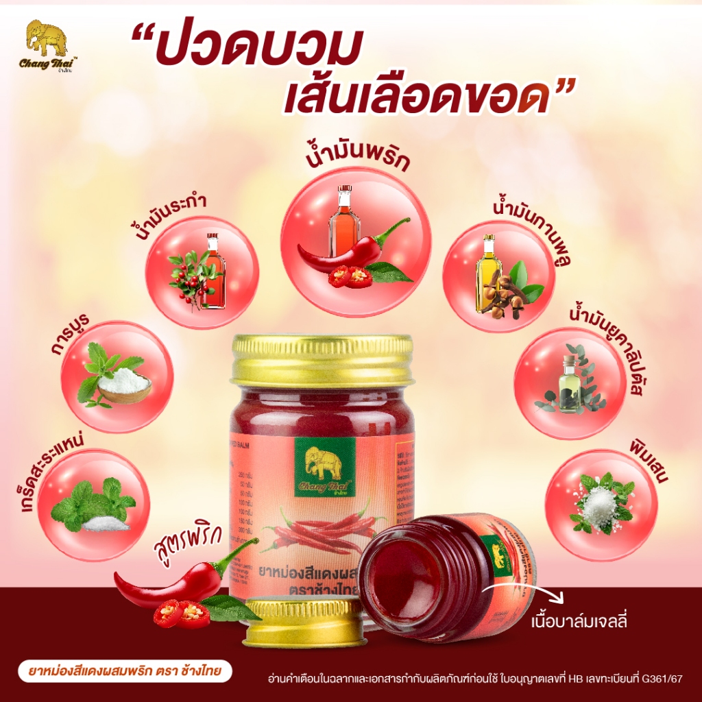 ยาหม่อง สีแดงผสมพริก ตราช้างไทย