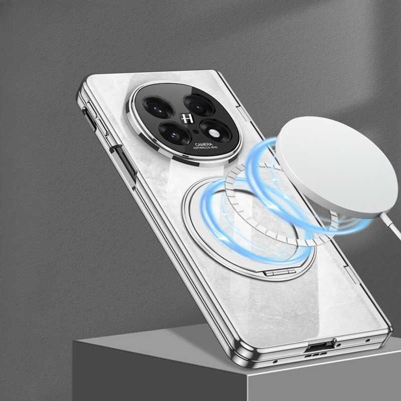 สําหรับ OPPO Find N5 กรณี GKK บานพับป้องกัน Hard PC ขาตั้งโปร่งใสฝาครอบดูดพร้อมกระจกนิรภัย