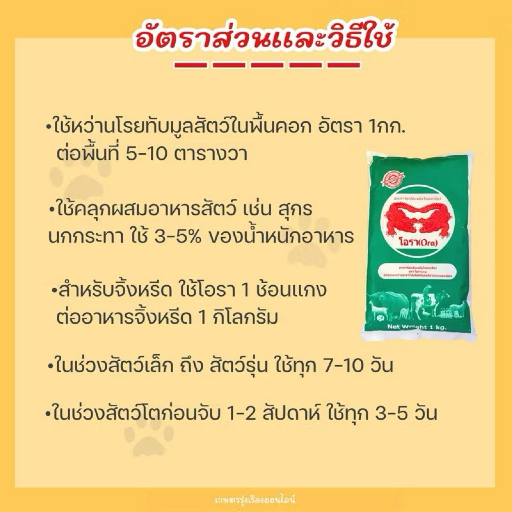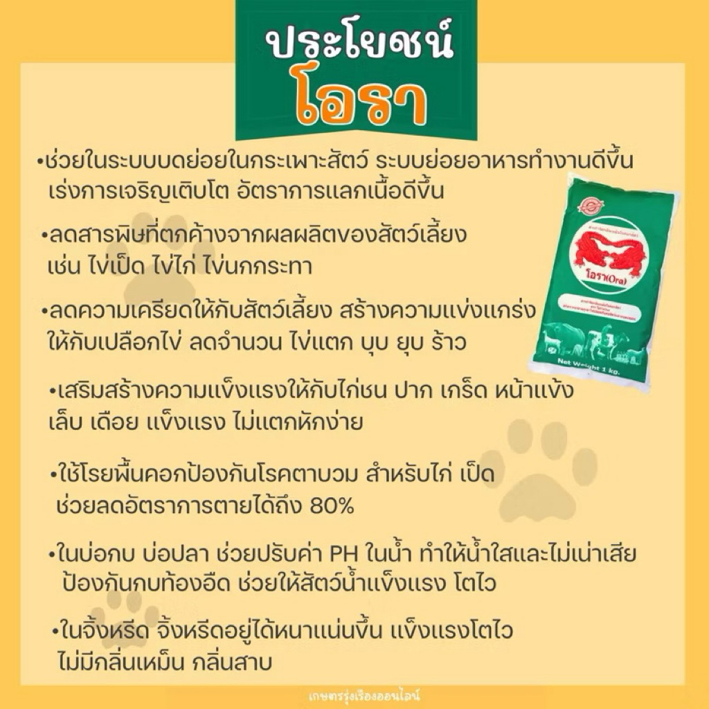 โอรา Ora สารกำจัดกลิ่นเหม็นในคอกสัตว์ (สกัดจากเเร่ธาตุภูเขาไฟปลอดภัยต่อสัตว์เเละมนุษย์ 100%) ขนาดบรรจุ 1 กิโลกรัม