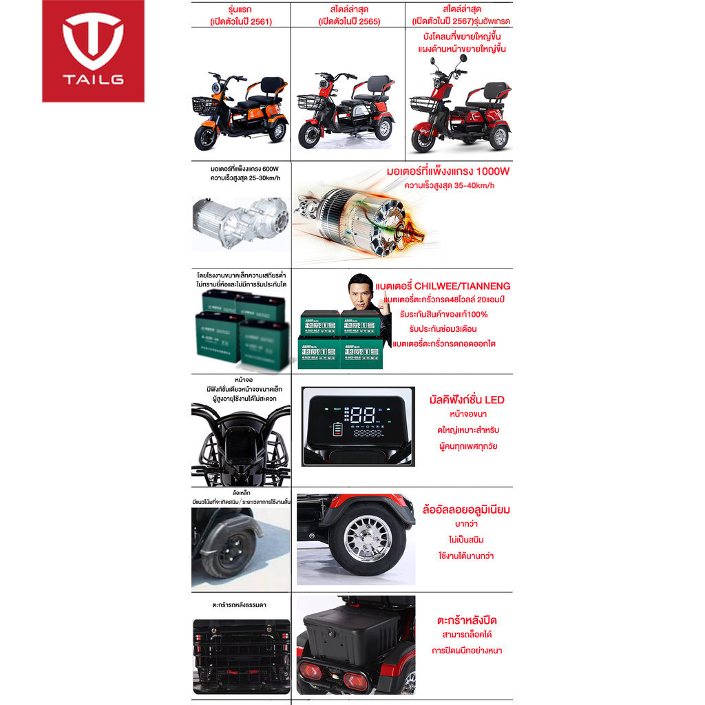 415]TAILG รถไฟฟ้าผู้ใหญ่ 3ล้อ 1000W สามล้อไฟฟ้า จักรยานไฟฟ้า3ลอ 3 ที่นั่ง รถมอเตอร์ไซค์ไฟฟ้าสามล้อ รุ่นใหม่ รับประกัน
