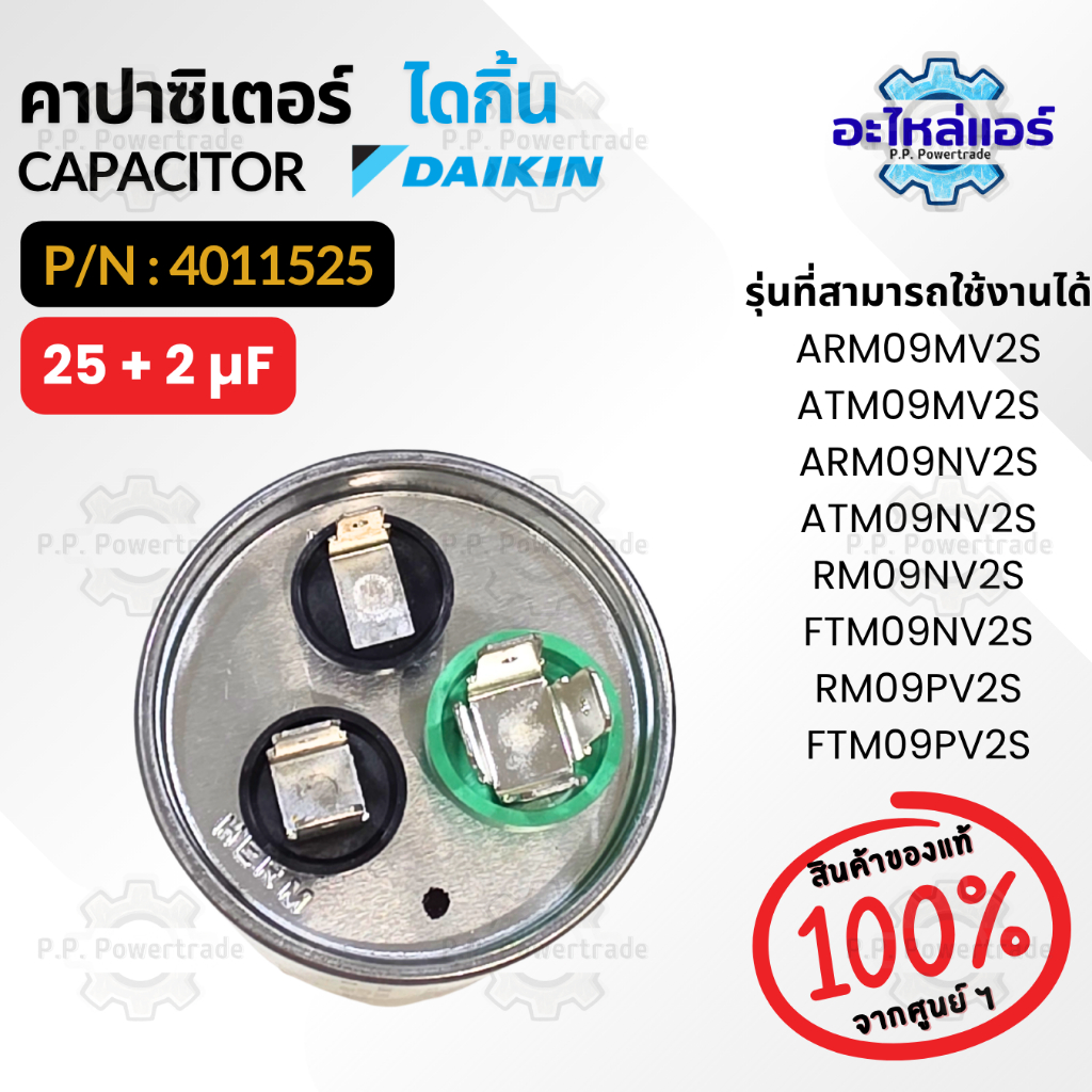 4011525 คาปาซิเตอร์แอร์ Daikin CAPACITOR 25+2µF 440VAC แคปรัน3ขั้ว อะไหล่แอร์ ไดกิ้น ของแท้
