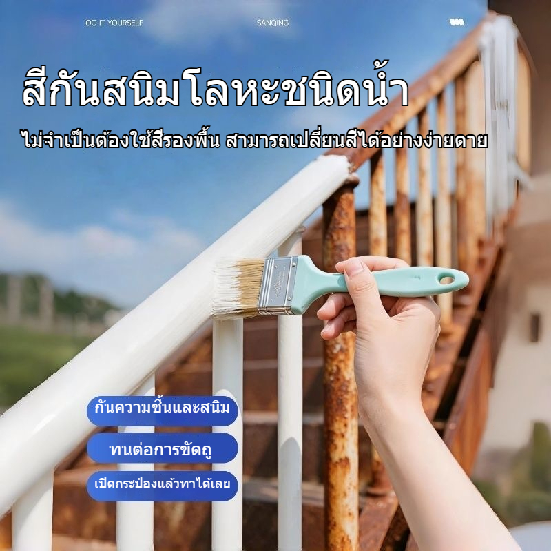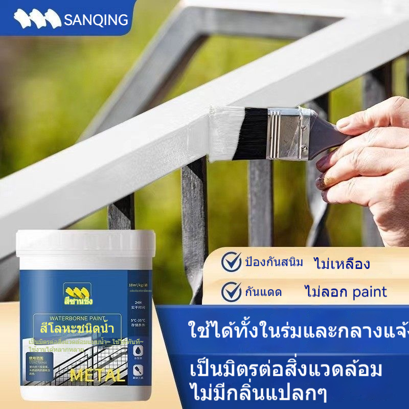 Sanqing Paint สีรองพื้นโลหะ สีน้ำยา 1000มล. กันสนิม กันน้ำกันแดด DIY ง่าย ไม่มีพิษ แถมอุปกรณ์
