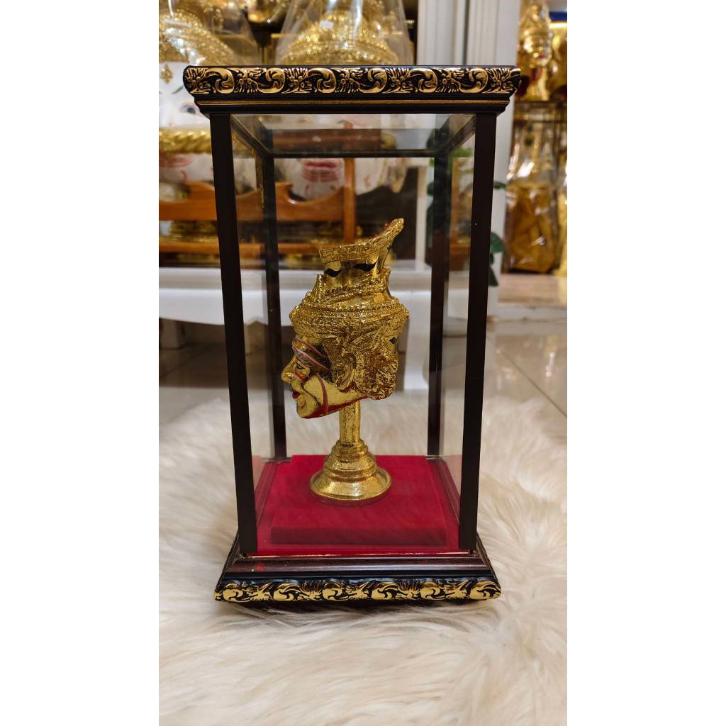 เศียรครู พ่อแก่ ฤาษี นารอท ขนาดบูชา กว้าง 4 นิ้ว สูงรวมฐาน 7 นิ้ว พร้อมตู้โชว์กระจกลายไทย ขนาด 6*6*10 นิ้ว ของที่ระลึก