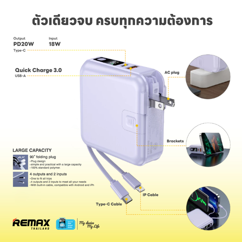 Remax Power Bank W1501 Double Deal Set - ชุดเซ็ตสุดคุ้ม 2ชิ้น พาวเวอร์แบงค์ มีปลั๊กมีสายชาร์จในตัว ชาร์จเร็ว QC 3.0