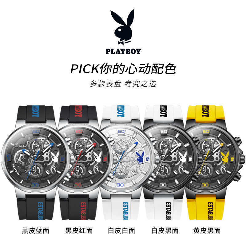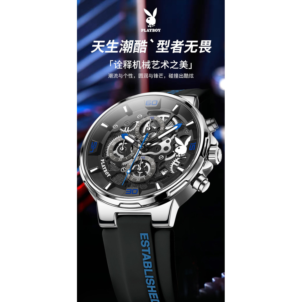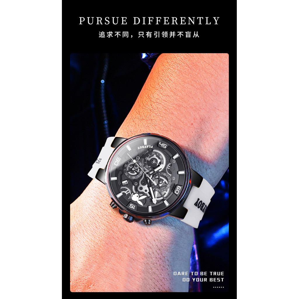 2025 ใหม่ พลีบอย นาฬิกาผู้ชายนาฬิกาควอตซ์ออกแบบแนวโน้มกลวงกันน้ําส่องสว่างปฏิทินนาฬิกาผู้ชาย