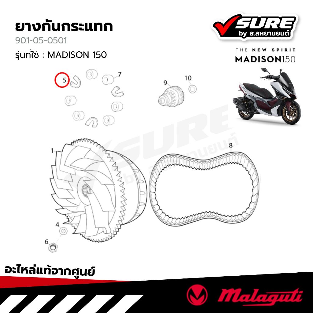 Malaguti (901-05-0501) ยางกันกระแทก ตัวล็อคเม็ดตุ้ม ตัวสไลด์ ตัวเลื่อน สำหรับมาลากูติ MADISON 150 เมดิสัน แท้ศูนย์