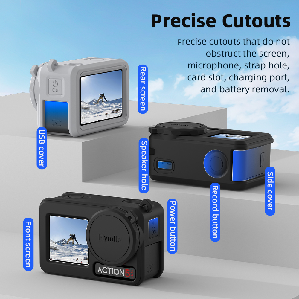 Flymile เคสซิลิโคนสําหรับ DJI Action 5 Pro ฝาครอบกล้องกีฬาพร้อมฝาปิดเลนส์ยางซิลิโคน Pr