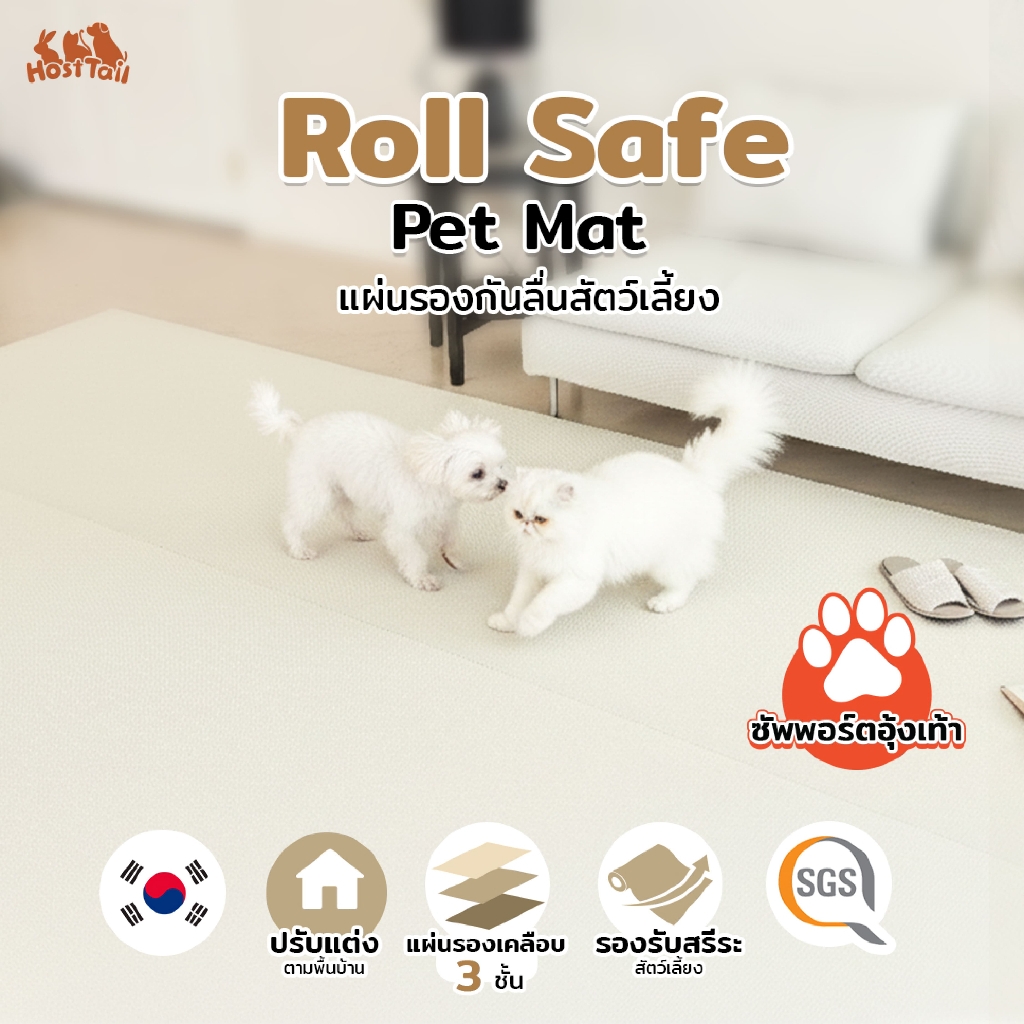Hosttail แผ่นรองกันลื่นสัตว์เลี้ยง แผ่นรองกันลื่นสุนัข ไม่ดูดสี ตัดได้ รุ่น RollSafe petmat