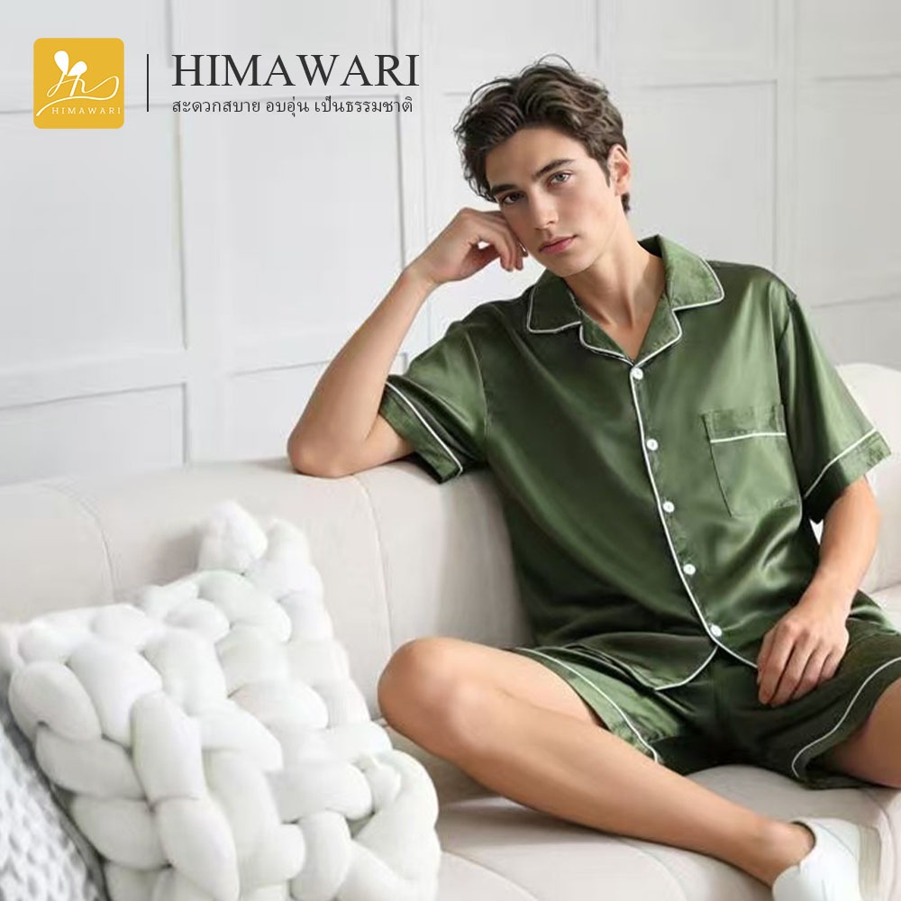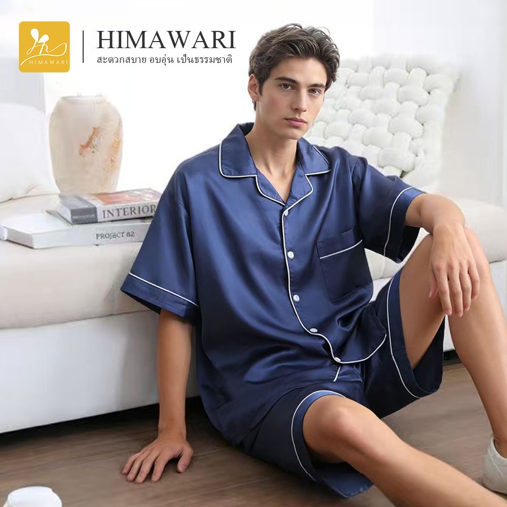HIMAWARI丨ชุดนอนคู่ ชุดนอน ชุดนอนแขนสั้น เสื้อแขนสั้น กางเกงขาสั้น Unisex ผ้านิ่งบาง ใส่นอนสบาย