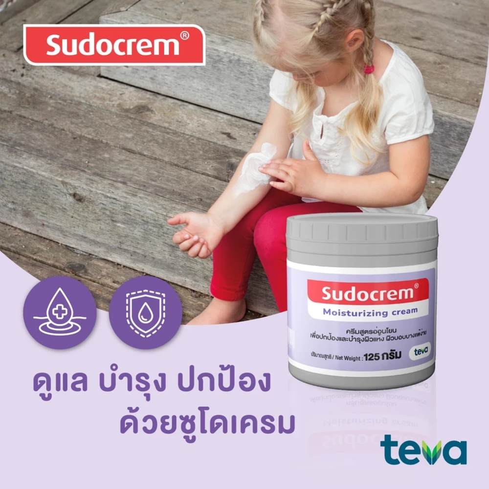 **แถมฟรีเทสเตอร์ 1 ชิ้น** Sudocrem Moisturizing cream ครีมสูตรอ่อนโยน เพื่อปกป้องและบำรุงผิวแห้ง [ ขนาด 125 กรัม ]