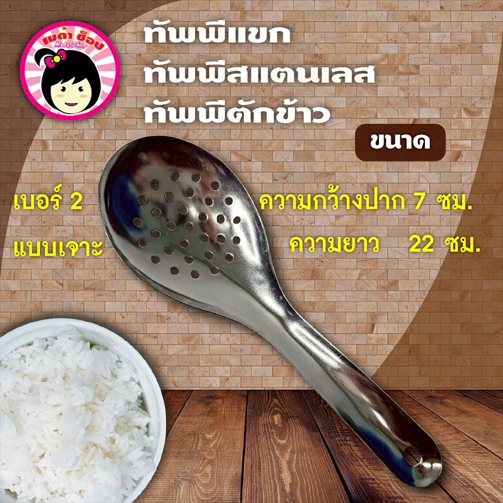 ทัพพีแขกสแตนเลส ทัพพีตักบาตร ทัพพีตักข้าว แบบเรียบ/แบบเจาะ