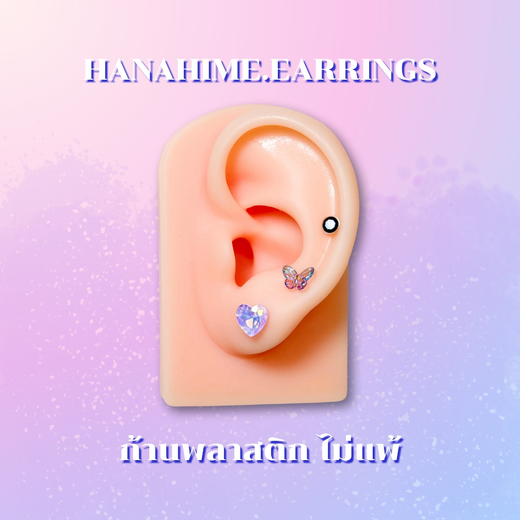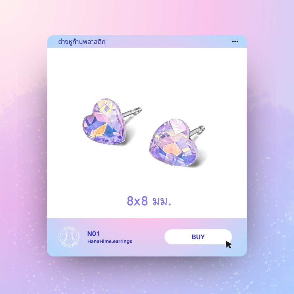 HanaHime.Earrings - Violet Heart Set ต่างหูก้านพลาสติก ต่างหูน่ารัก ต่างหูสีม่วง สีดำ แพ้ง่ายใส่ได้