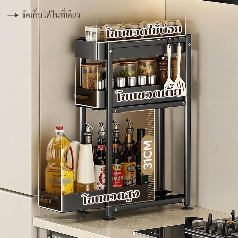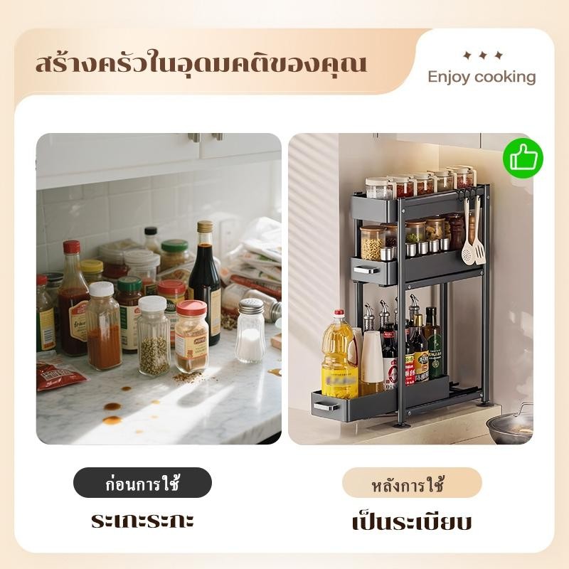 NBSail ที่จัดเก็บเครื่องเทศในลิ้นชัก ลิ้นชักจัดเก็บของหลายชั้น ดึงออกมาได้ สำหรับวางในช่องว่างบนเคาน์เตอร์ครัว