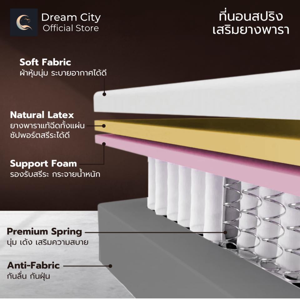 Dreamcity [แพ็คใส่กล่อง] ที่นอนสปริงเสริมยางพารา รุ่น vivian หนา 12 นิ้ว ให้สัมผัสนุ่มนอนสบาย ระบายอากาศได้ดี