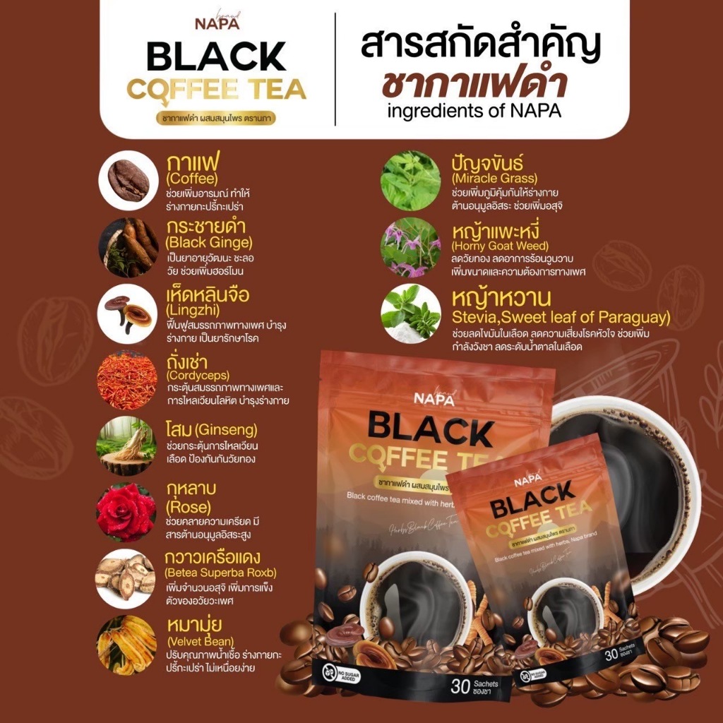 [ตะกร้าบริษัท] NAPA BLACK COFFEE TEA ชากาแฟดำ เพื่อท่านชาย 1 ห่อ 30 ซอง