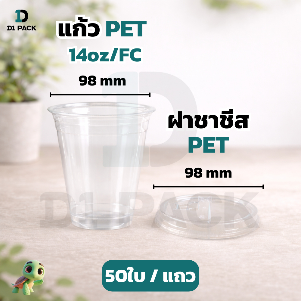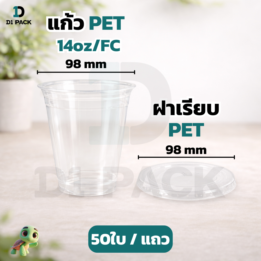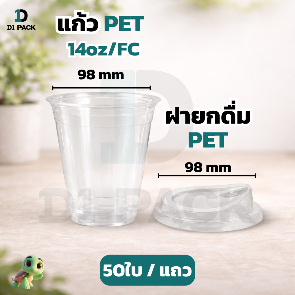 CPE-แก้ว PET14 ออนซ์ ปาก98 มิล ทรงสตาร์บัค +พร้อมฝา หนาพิเศษ (50ใบ)