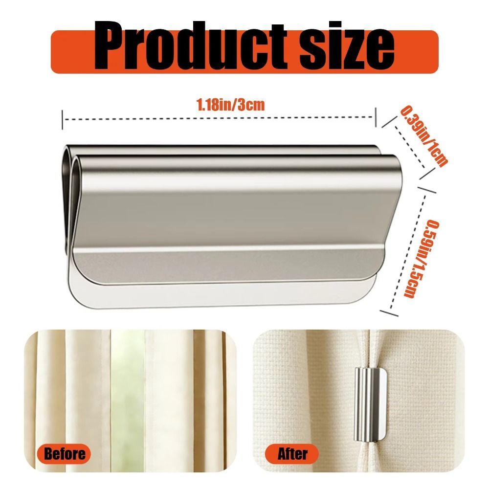 FEIYING เฟยอิง 1คู่คลิปปิดม่าน, หัวเข็มขัดยึดม่านโลหะที่ถอดออกได้, คลิปม่านดึงดูดแม่เหล็กโฮมออฟฟิศ