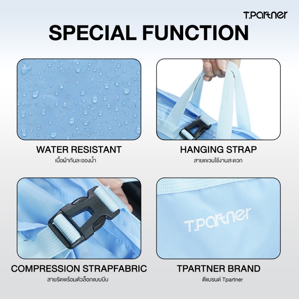 Tpartner Foldable Hanging Travel Organizer Bag — กระเป๋าจัดระเบียบแบบเเขวน เก็บเสื้อผ้า ของใช้ส่วนตัวเป็นสัดส่วน 6 ช่อง