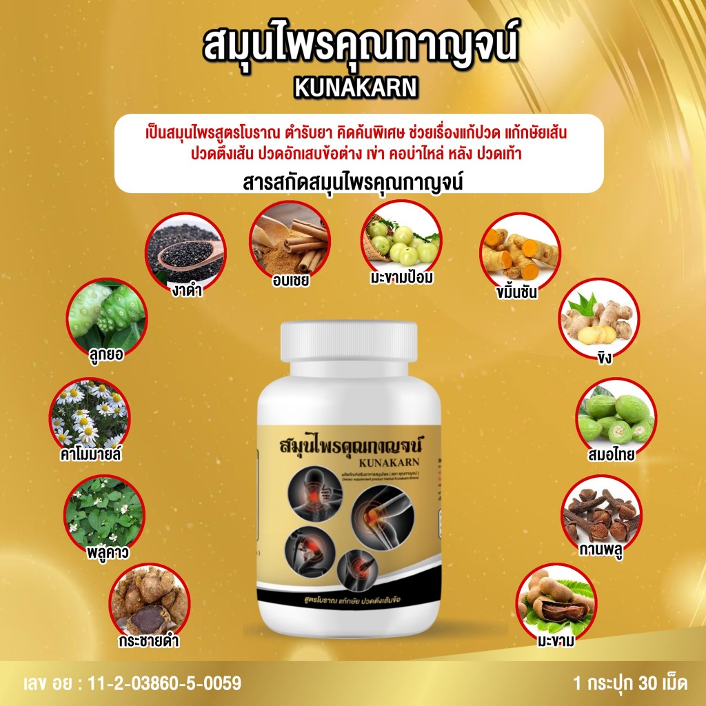 1 แถม 2 สมุนไพรคุณกาญจน์ แก้ปวดข้อ ปวดเข่า ปวดหลัง คอบ่าไหล่ เส้นตึง เอ็นสะโพก รับรองมาตรฐานจาก อย.