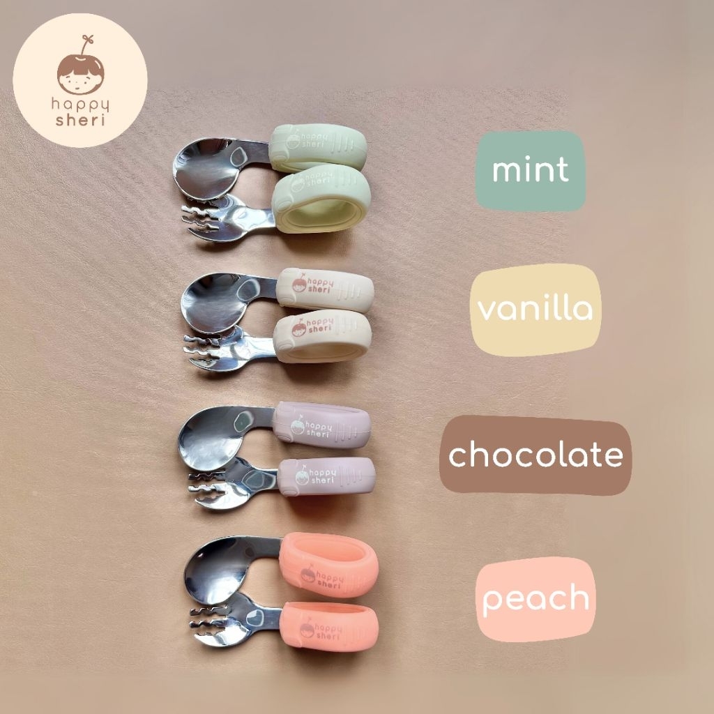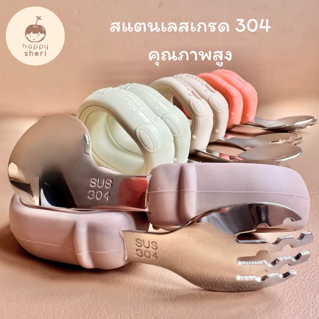 Happy Sheri ช้อนส้อม BLW พร้อมกล่องเก็บ | BLW spoon & fork ช้อนส้อมเด็ก สำหรับเด็กเริ่มหัดทานเอง ช้อนห่วงกลม จับถนัดมือ