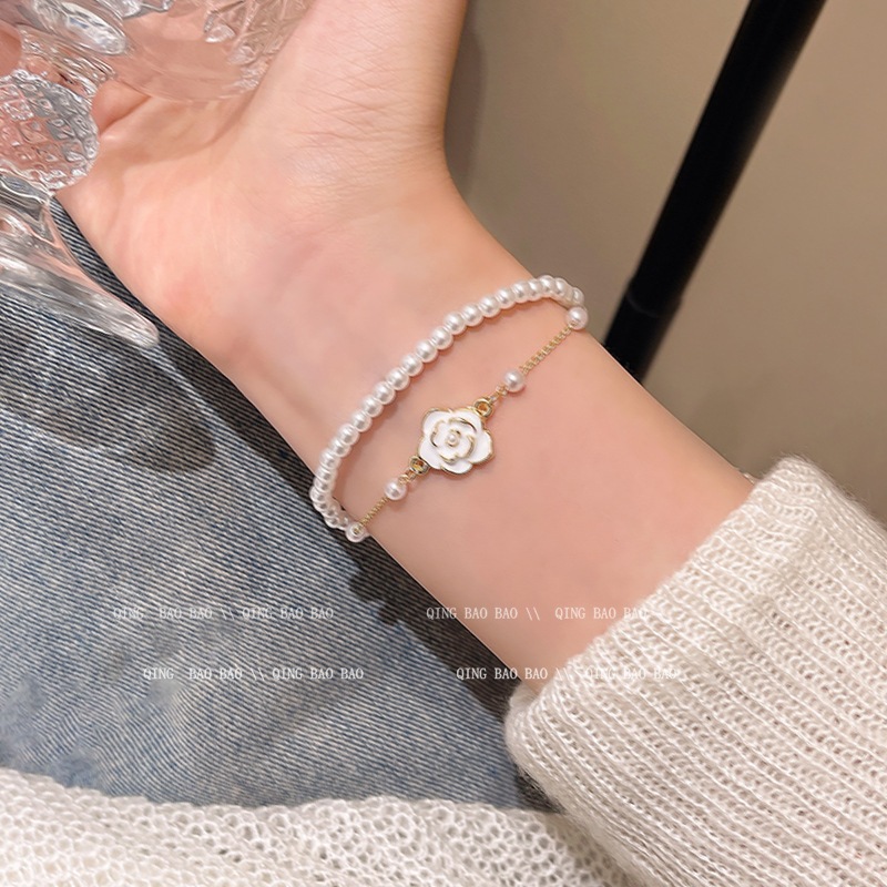 COD-ส่งเร็วจากไทย🎀สร้อยข้อมือ ดอกคามิเลีย ประดับไข่มุก เกาหลี ระดับไฮเอนด์ ปรับขนาดได้สำหรับผู้หญิง ของขวัญวันหยุด-Ten