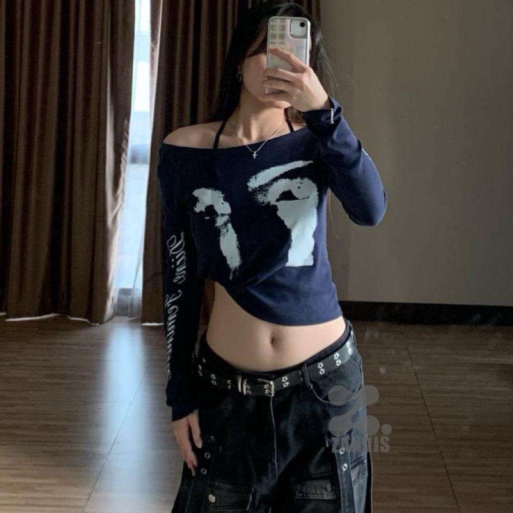 (Zanvis tee)เสื้อยืดแขนยาวคอปาด ปาดไหล่ได้ ทรงBabytee เข้ารูป ผ้าคอตตอลยูนิ นุ่มยืดเยอะ สกรีนลาย