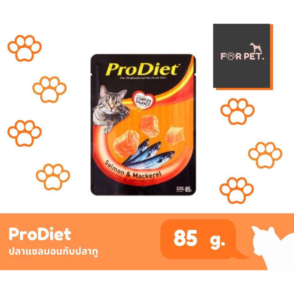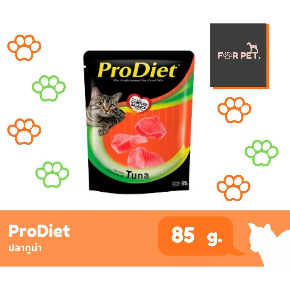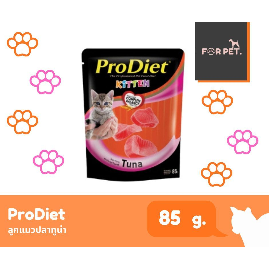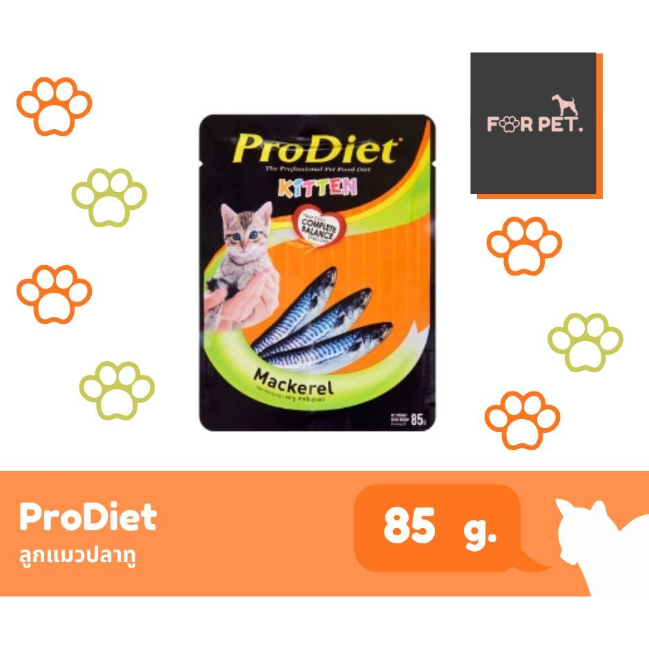 ProDiet อาหารเปียกสำหรับลูกแมวและแมวโต 85g แพ็ค 12 ชิ้น รสปลาทูน่า แมคเคอเรล และไก่ คุ้มค่าและประหยัด