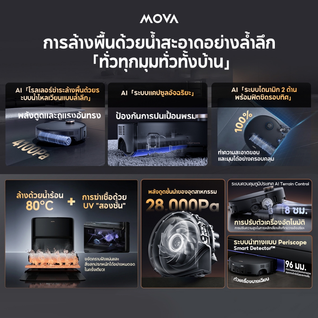 【HOT】MOVA Z60 Ultra Roller Robot Vacuum Mop หุ่นยนต์ดูดฝุ่น ถูพื้น อัจฉริยะ แรงดูด28kPa ล้างแปรงด้วยน้ำร้อน 80℃