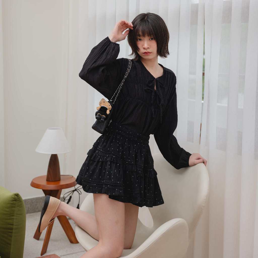Kimmame - กระโปรง รุ่น Polka Dot Velvet Skirt 2 สี