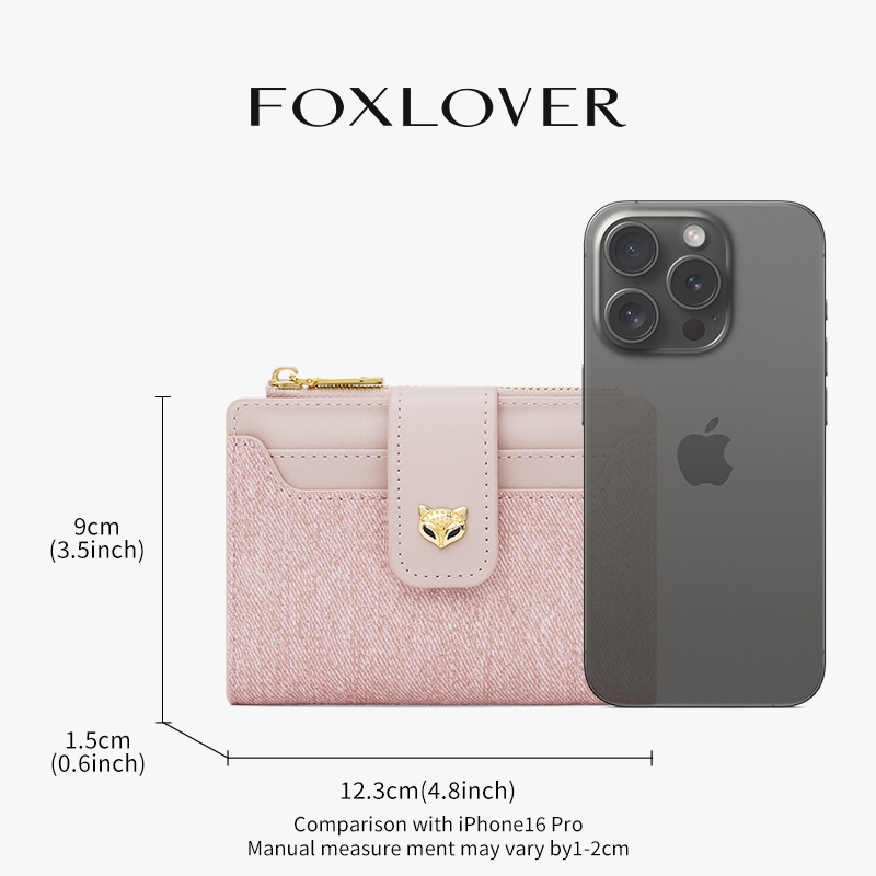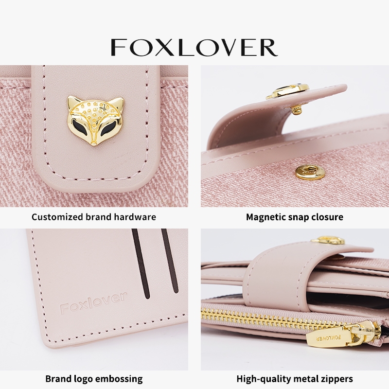 FOXLOVER กระเป๋าสตางค์ผู้หญิง สไตล์สั้น ช่องใส่การ์ด5 ช่อง ผ้าเดนิม เรียบง่ายและมีสไตล์