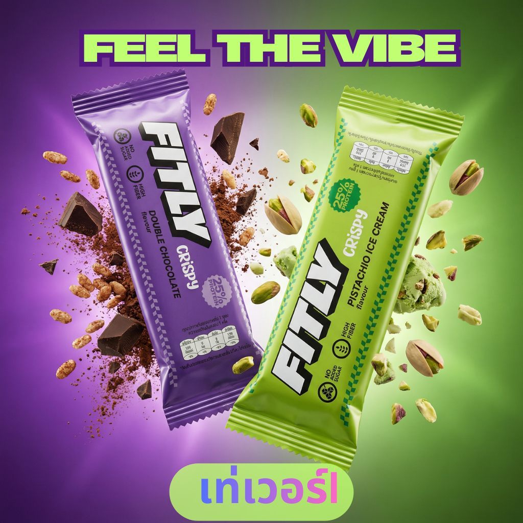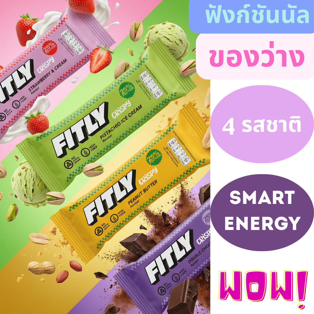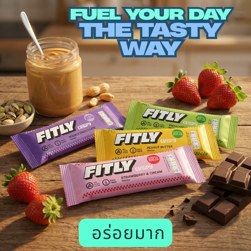 FITLY CRISPY Protein Bar โปรตีนบาร์ | 40 กรัม | โปรตีน 25% | ไม่มีน้ำตาลเติม | ไฟเบอร์สูง