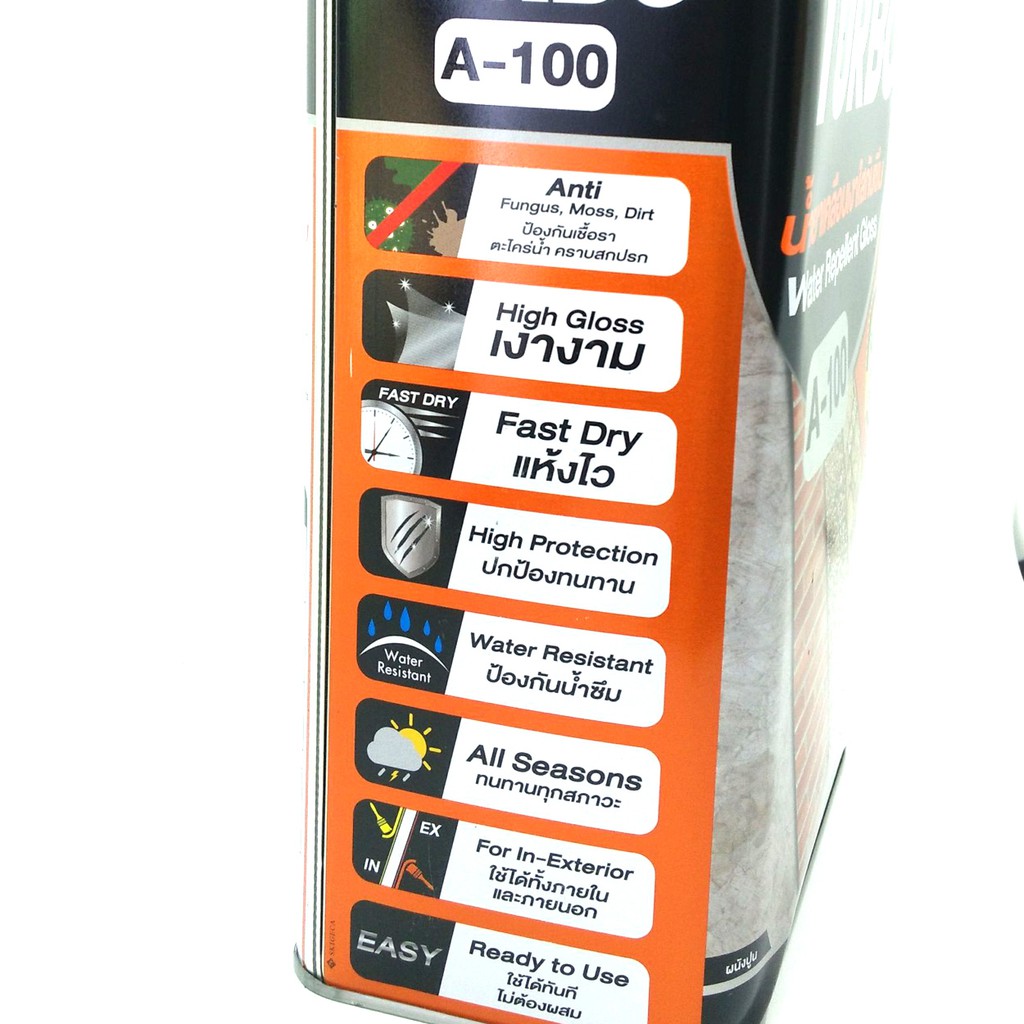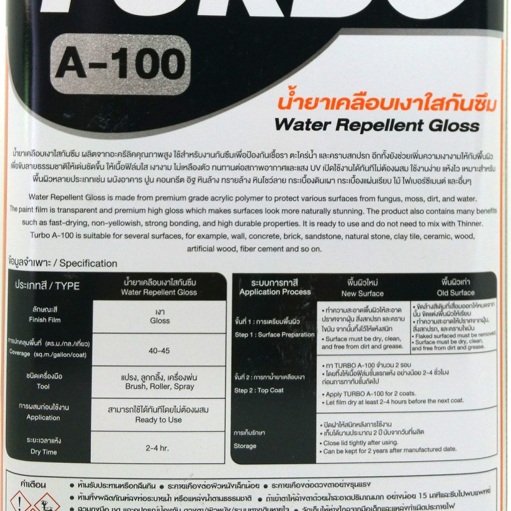 TURBO น้ำยาเคลือบเงาใสกันซึม A-100 ฟิล์มเงา แห้งไว ใช้ได้ทั้งภายนอก-ภายใน ปริมาตรสุทธิ 3.785ลิตร