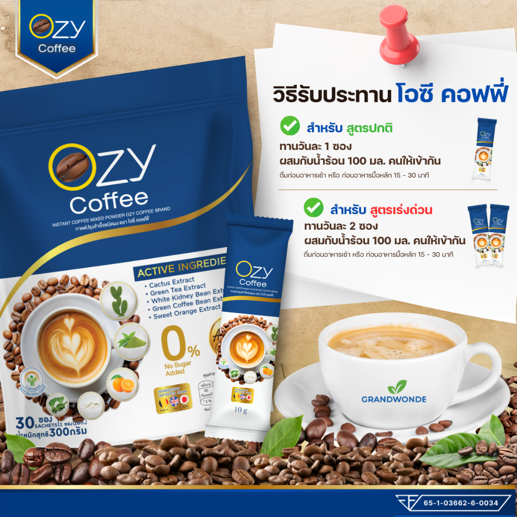 สินค้าใหม่ Ozy Coffee โอซี่ คอฟฟี่ กาแฟเพื่อสุขภาพ ล่าสุด by พี่หนิง ปณิตา 1 ห่อ บรรจุ 30 ซอง