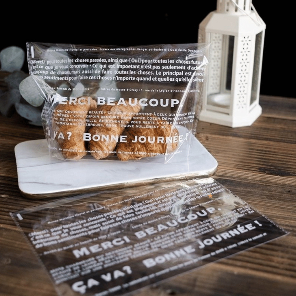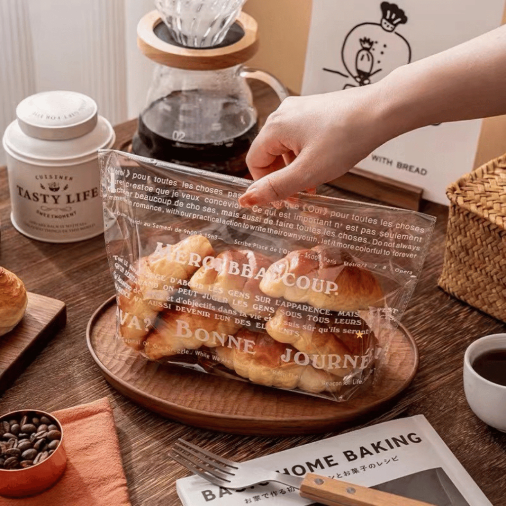 แพ็คละ 95-100 ใบ ถุงขนมปังฝากาวแบบขยายก้น พิมพ์ลาย