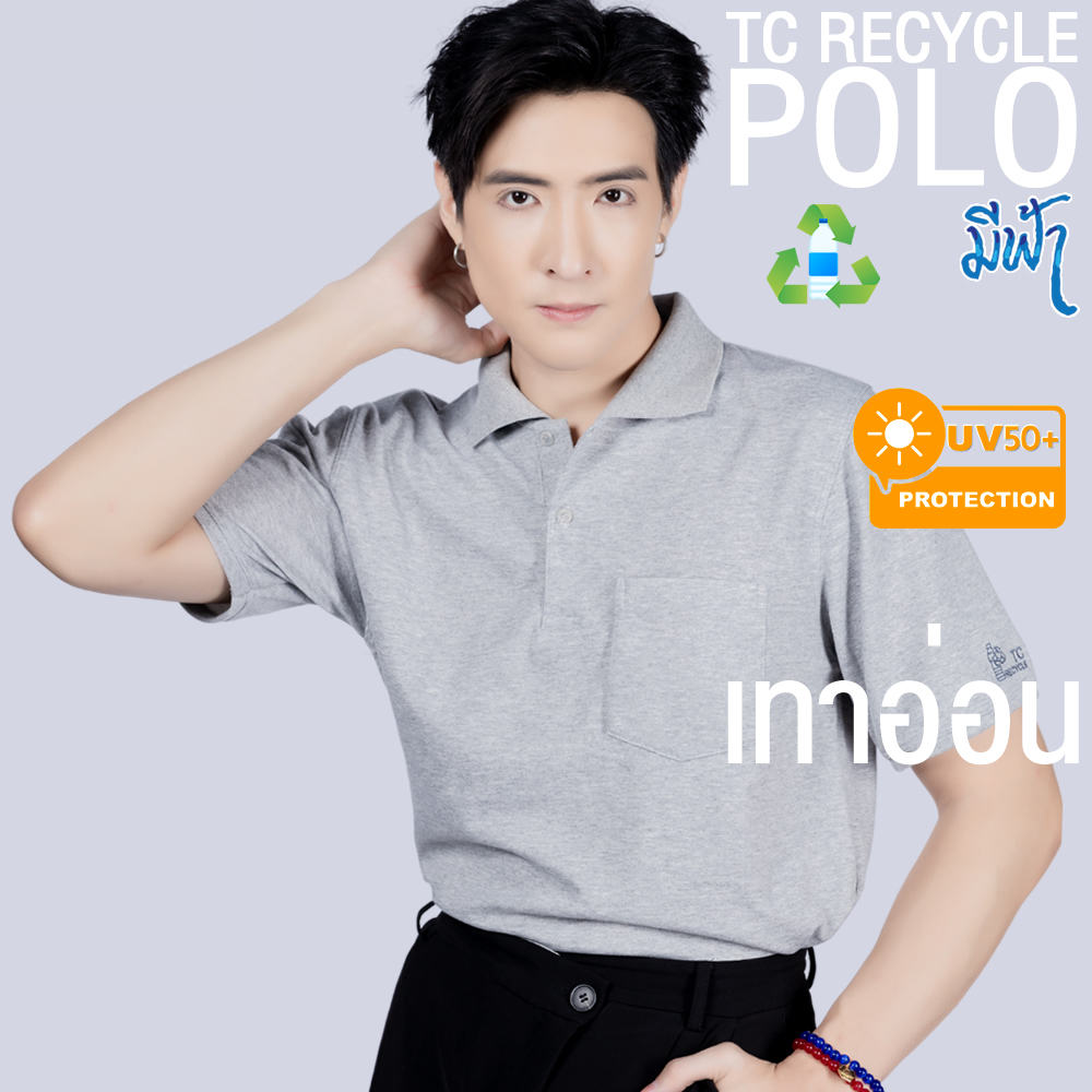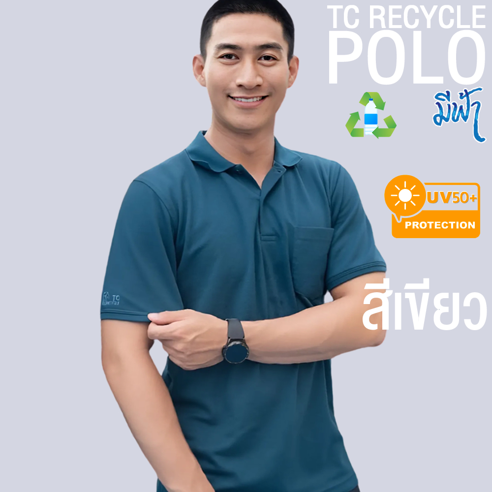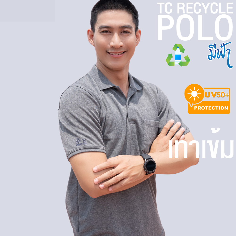 มีฟ้า เสื้อโปโล TC Recycle ผสม Cotton ผู้ชาย ใส่ทน สบาย ระบายอากาศดี ตัดเย็บเนี้ยบ