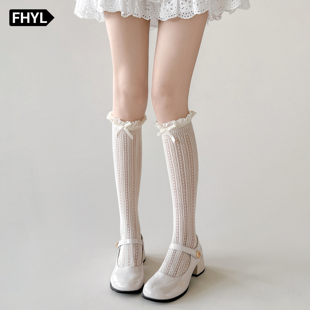 FHYL ถุงเท้าญี่ปุ่นสำหรับผู้หญิง แบบย่างยาว sweetness JK Lolita Bowknot กึ่ง opacity fishnet
