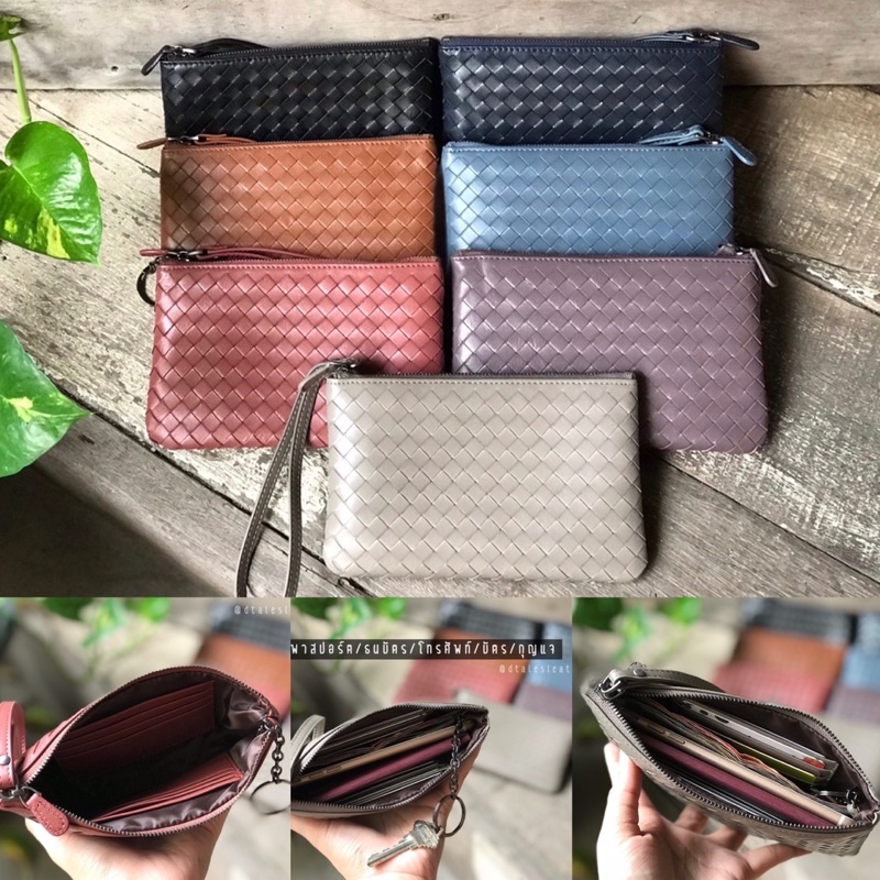 DTALES ส่ง16เมย หนังแกะแท้ กระเป๋าสตางค์หนังแท้ คล้องมือ น้ำหนักเบา หนังนิ่มขยำได้ทั้งใบ ลุคเรียบหรู