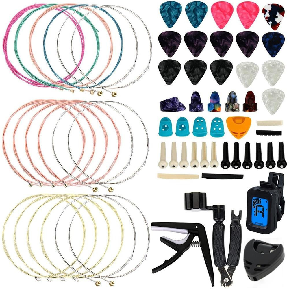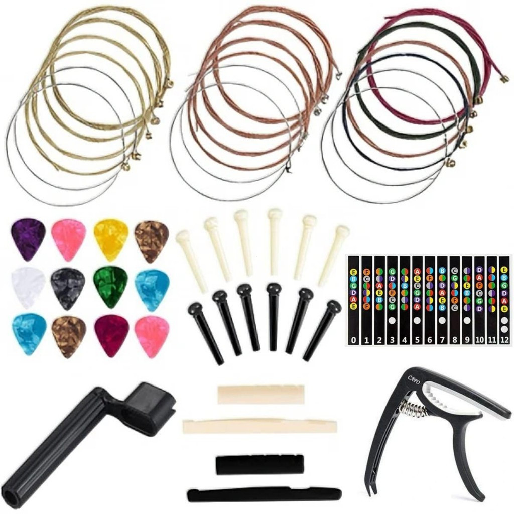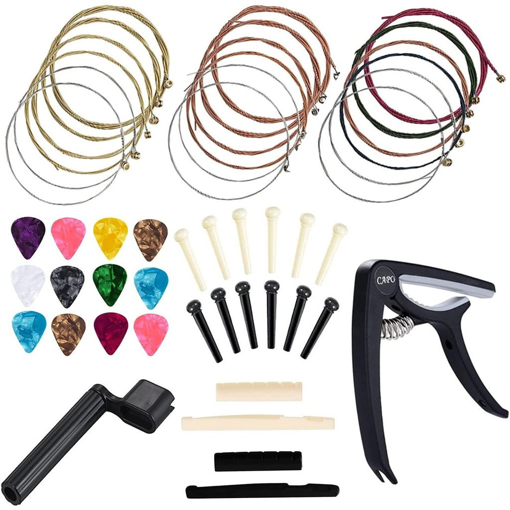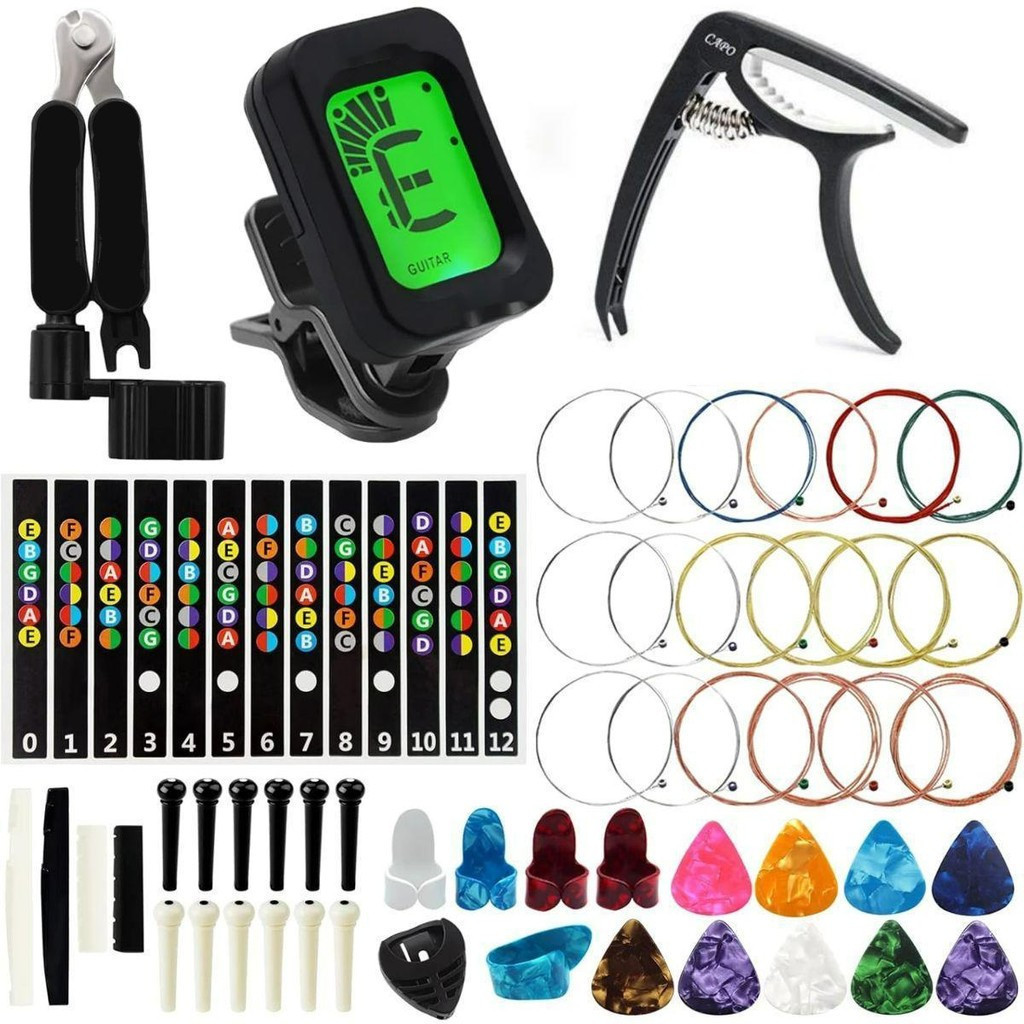 ชุดเครื่องมือกีตาร์ 48–66 ชิ้น พร้อมคาโป้ ปิ๊ก สายกีตาร์ และอุปกรณ์เปลี่ยนสายครบชุด