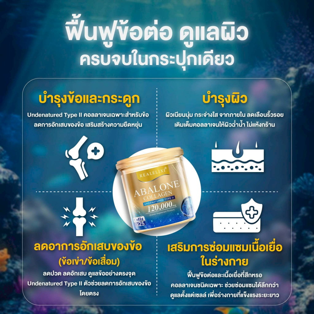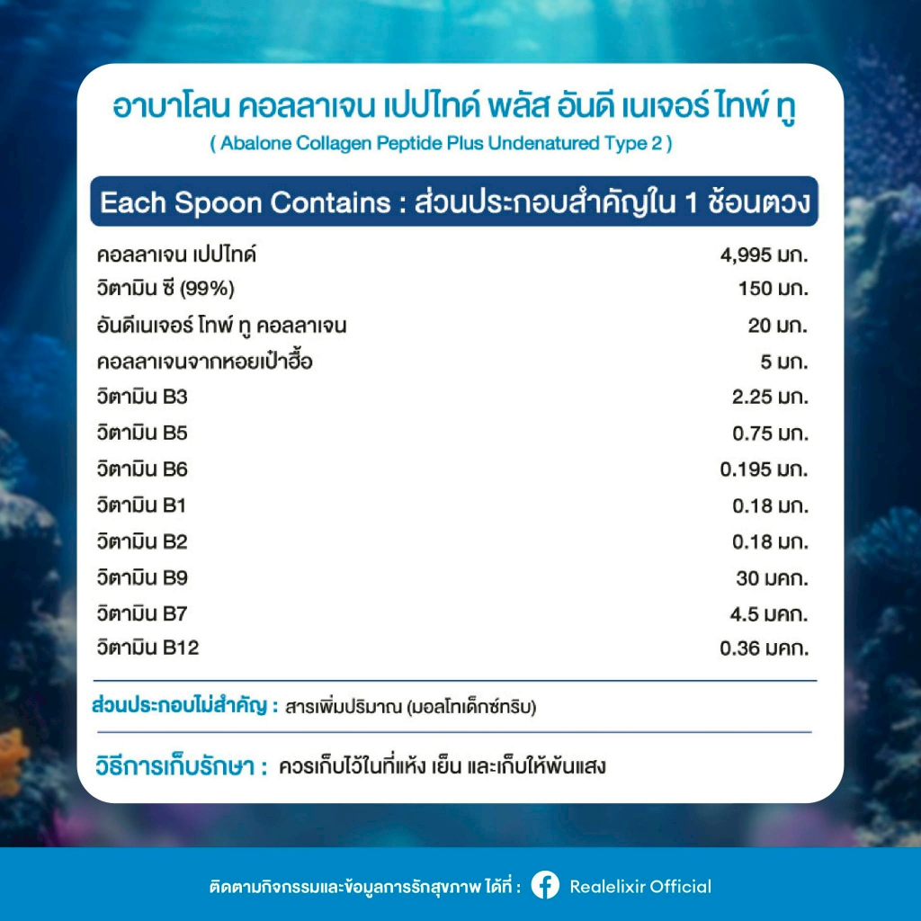 [โปร 5 กระปุก] Real Elixir Abalone Collagen Peptide Plus Undenatured Type II 120g Real Instant Drink 1x120g